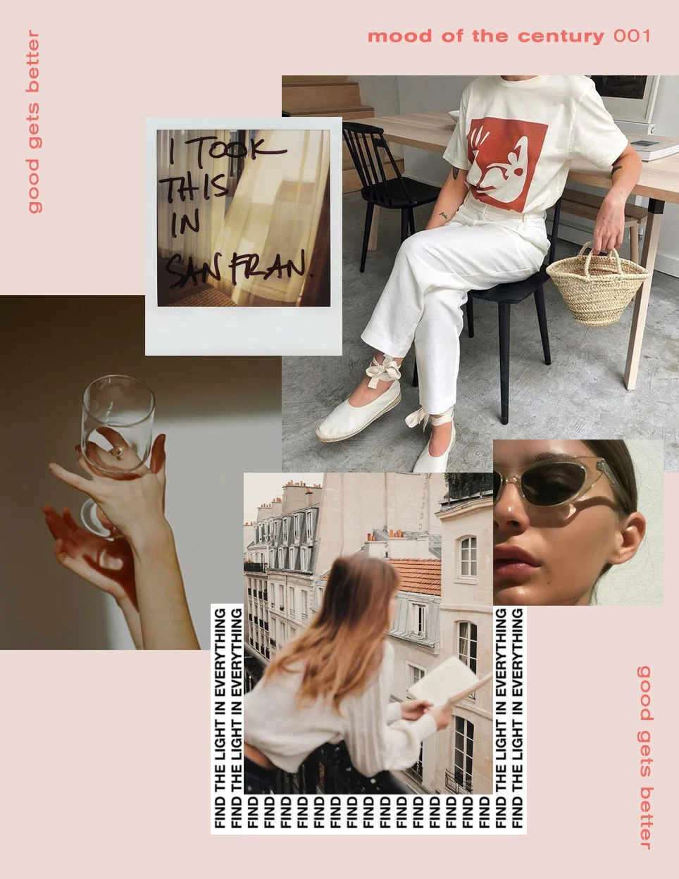 Mood of the Century is my version of a mood board or vision board, whatever you like to call it. When I was in middle school, I collected magazines and purchased a few to my own collection especially when Zayn was on the cover of Fader. Major swoon alert. I remembered vividly when I watched High School Musical marathon while scrapbooking and eventually, I bought poster boards from Target and created more collages. They were mostly fashion based or teen celebs (Jonas Brothers, Demi Lovato, Zac Efron etc). You get the jist. I I created my first vision board in my health class and it was my gateway to layout design. My health teacher had such a quirky style and she swore by anything Anthropologie. Of course, she had the catalogs and boy, I hit the jackpot. For this assignment, I had to create my vision board of my favorite interests, career goals, health goals and so forth. She had her own stash of magazines, catalogs and other publications for the class to use. I ended up taking more of the Anthro catalogs and just got fully immersed with the creative direction, photography and overall production of each photo shoot. Needless to say, my boards will consists of a theme or concept and I’ll share some written words too.